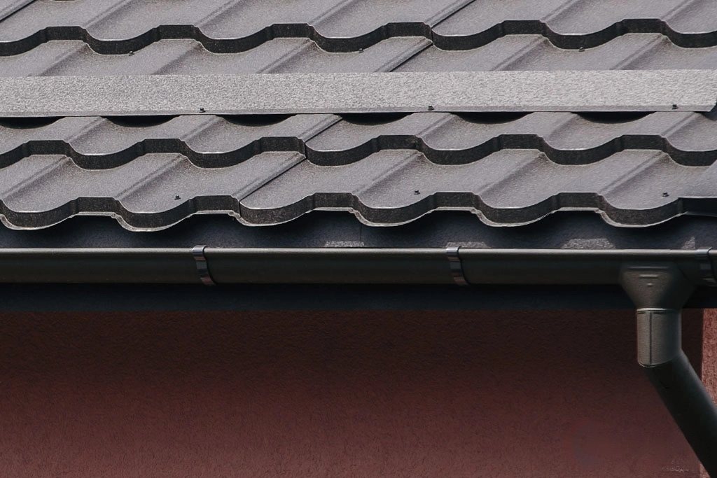 Водосточный желоб имеет уникальную в своем роде конструкцию. Наружный продольный край желоба, имеет расширенный загиб, являющийся одновременно дополнительным ограничителем перелива воды во время интенсивных осадков, а так же предает дополнительную жесткость конструкции, предохраняя ее от прогибов и деформаций во время монтажа и эксплуатации, гарантируя высокую точность и герметичность.